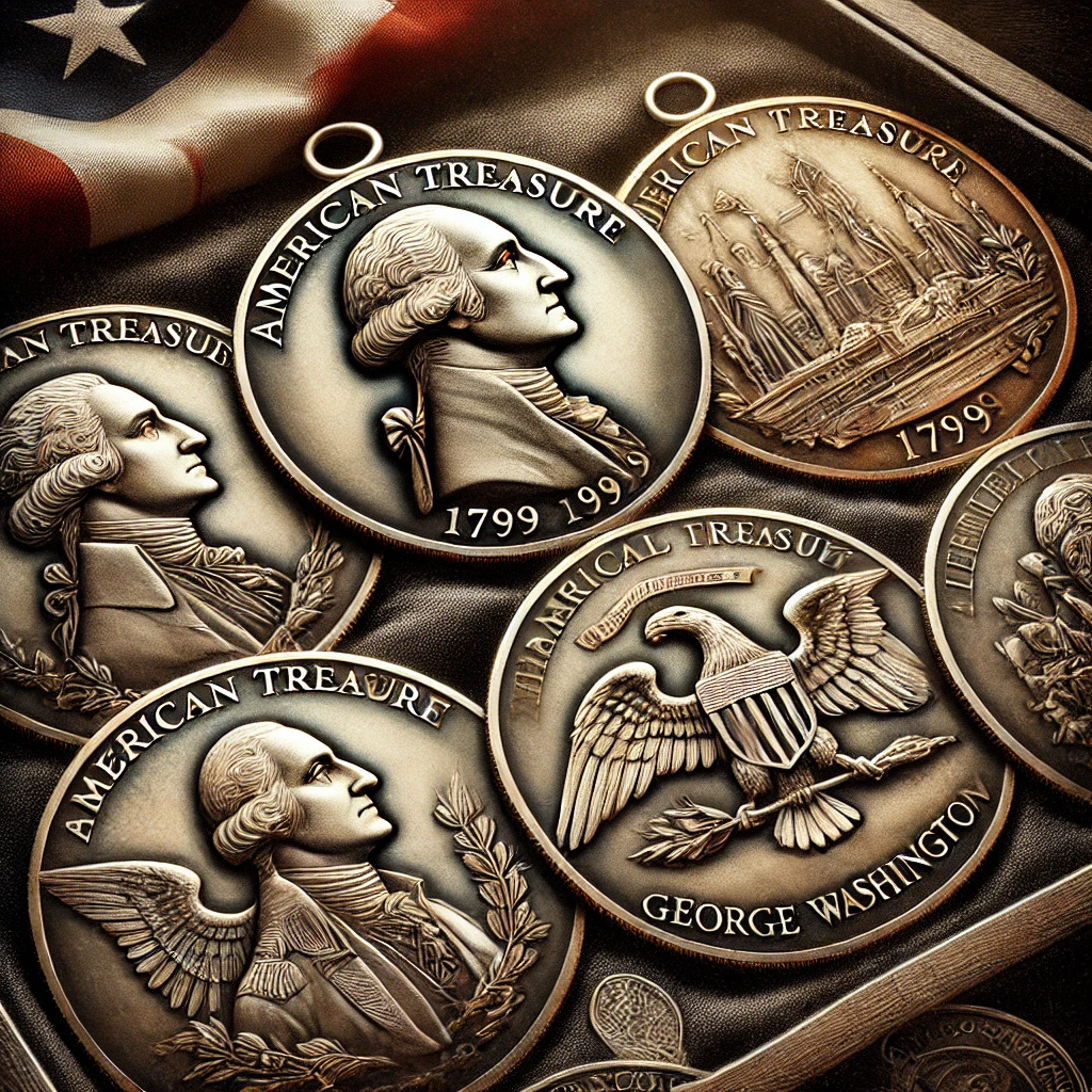 Vážený rytec, vynálezce a člen zednářského bratrstva Jacob Perkins navrhl pamětní pohřební medaile jako poctu otci zakladateli, aby je „nosily lidé všech věkových kategorií“.