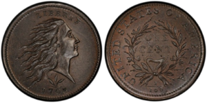 Jsou vzácné mince a pak jsou tu ultravzácné mince. 1793 Flowing Hair Wreath Cent Vine and Bars je mezníkem, který je dnes prakticky nemožné najít ve vysokých stupních. Odhad přežití je pouze 8 pro stupně 65 nebo lepší. Stále se jedná o extrémně těžko dohledatelnou raritu ve stupních 60 nebo lepších s pouhými 40 přeživšími.